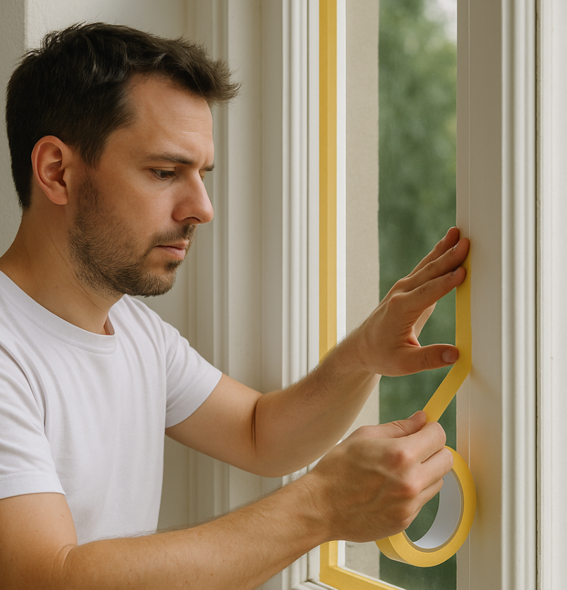 Tape doet veel, maar niet alles. Een goede voorbereiding voorkomt frustratie. Oude verflagen of kit die ver over het glas zijn uitgesmeerd, moeten eerst weg. Krab of snij deze restjes strak langs het houtwerk af. Zo plakt u de tape op een schone, rechte lijn en krijgt u die mooie, scherpe verfrand.